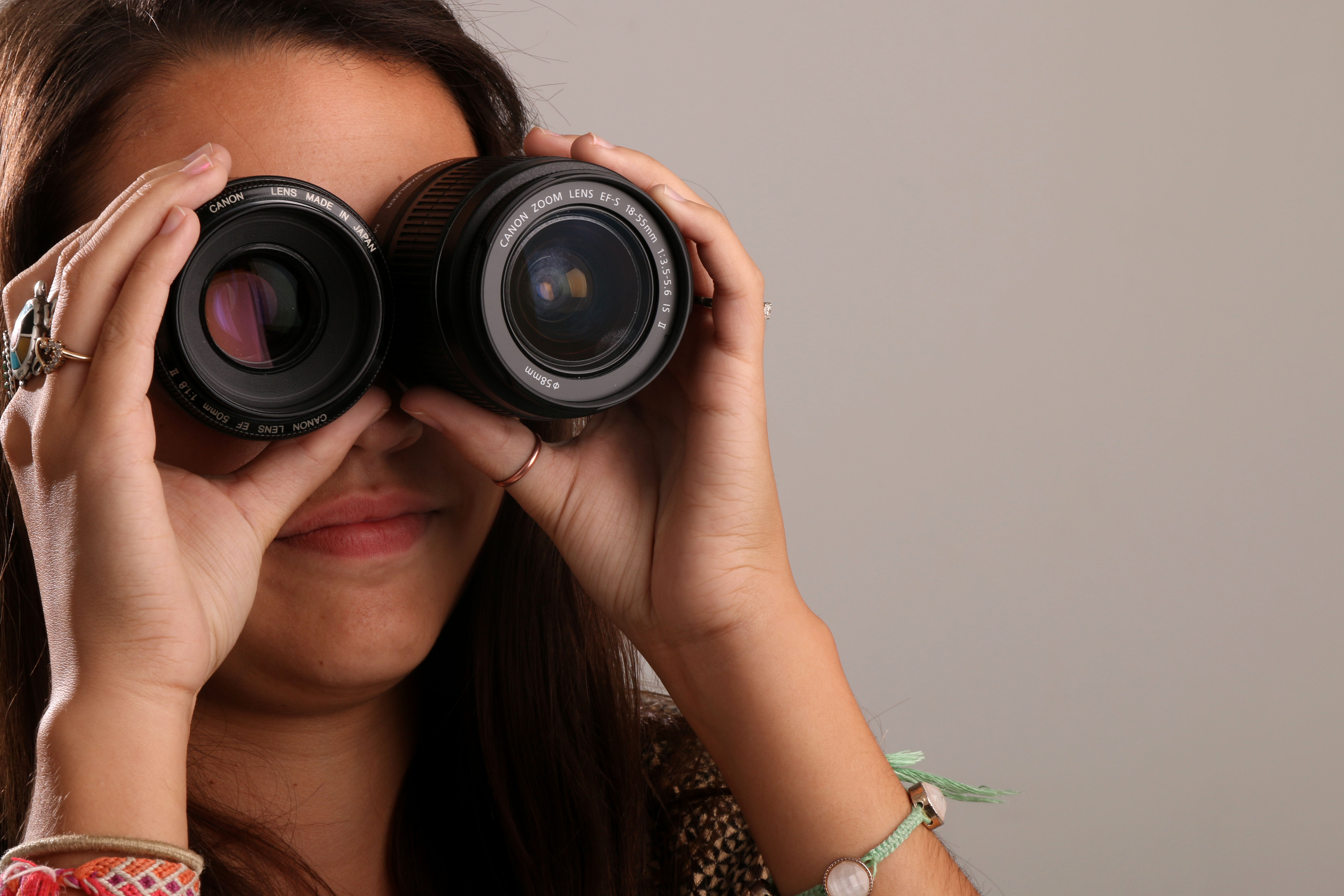 The first experience in the journalism studio was a hoot. The class laughed and cheered on as we took turns shooting and posing for photos. I took photos of Alex, shown here reminding to keep your eyes (or lenses) towards the future.