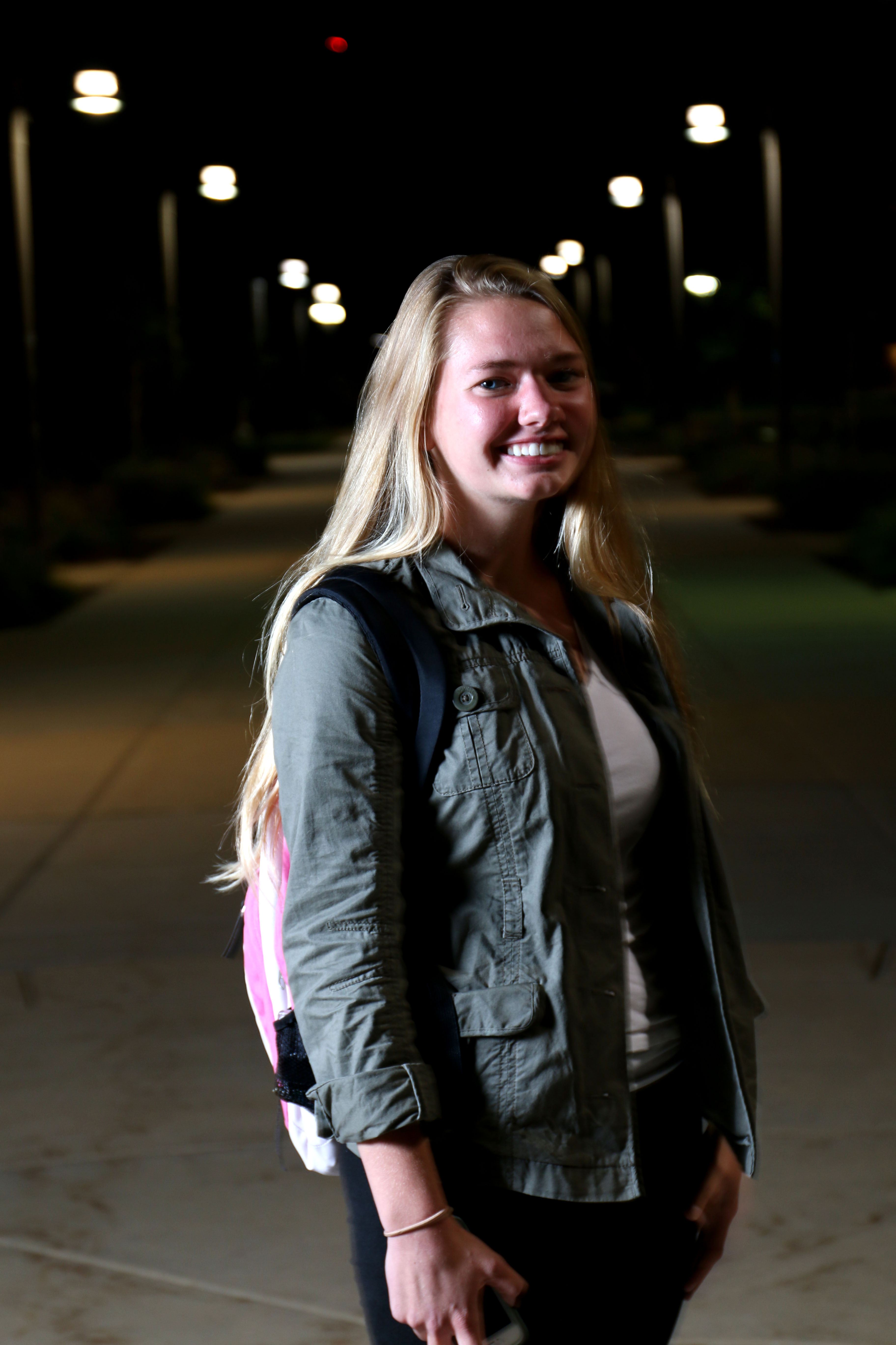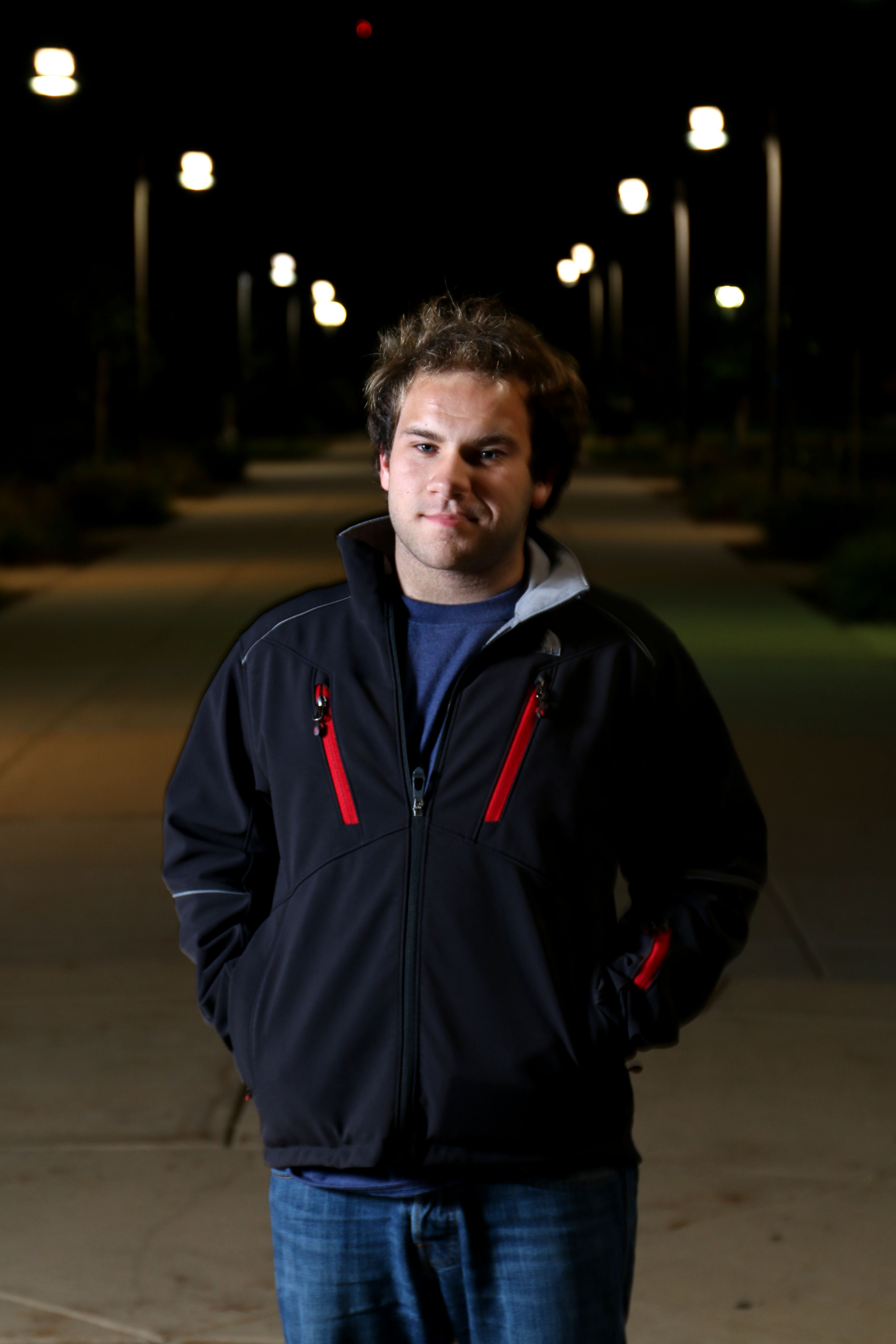 Another way to compensate for only having one light was using the main light with no umbrella angled at the subjects back, high up on the stand pointing down. Then, the reflector was placed extremely close to the subjects face pointing back at the light. It really did create very nice light for a tight photo at night with only one speed light.