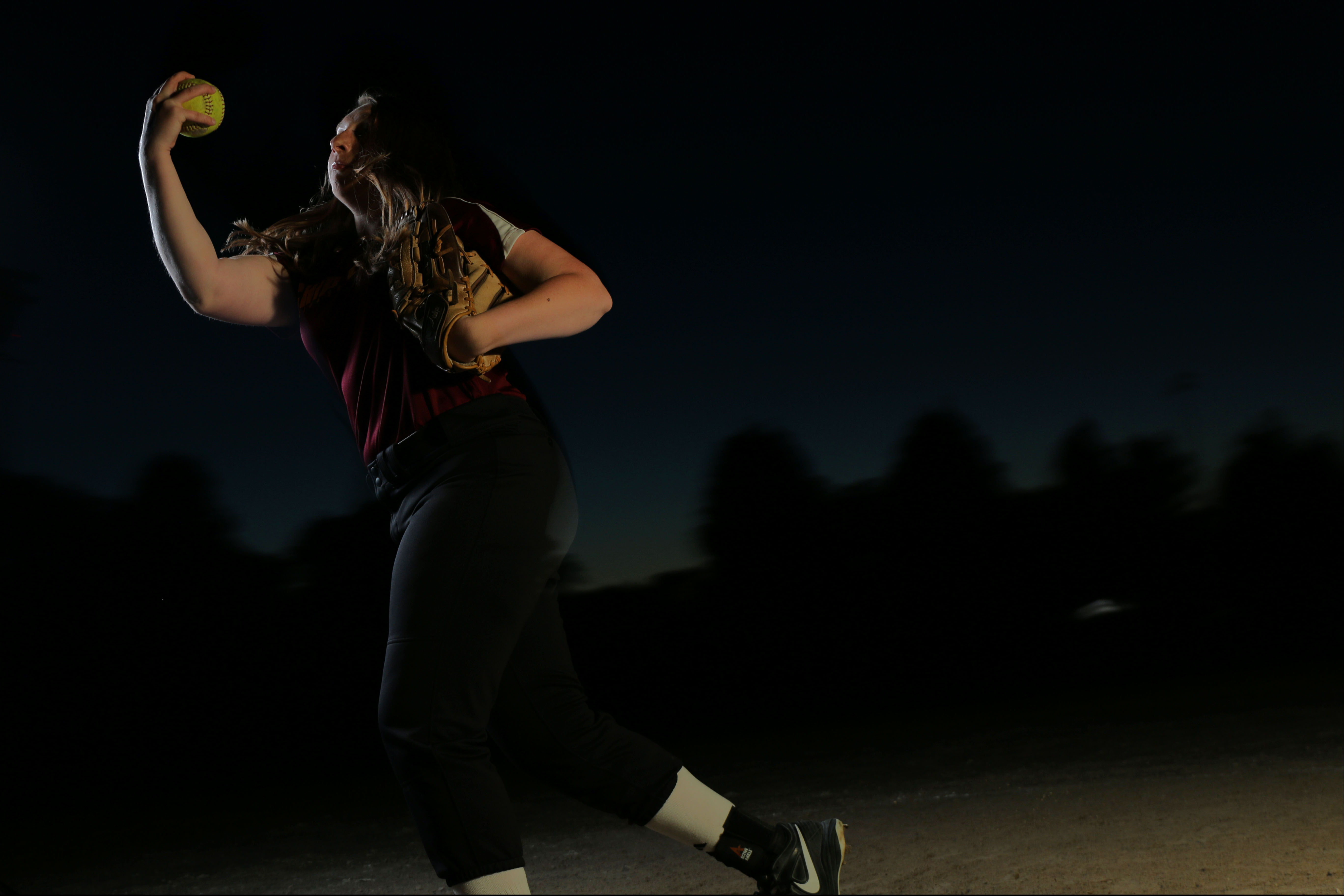 Jessica Brockert, 19 of Macomb, Michigan poses late September 23, 2014 in the softball fields of Island park in Mt. Pleasant, Michigan. She often practices or plays games in the community park’s fields with the Central Michigan University club softball team. Holding a busy game schedule for the season, Brockert does not have a free weekend until Thanksgiving, she’ll spend her weekends playing the sports she loves.