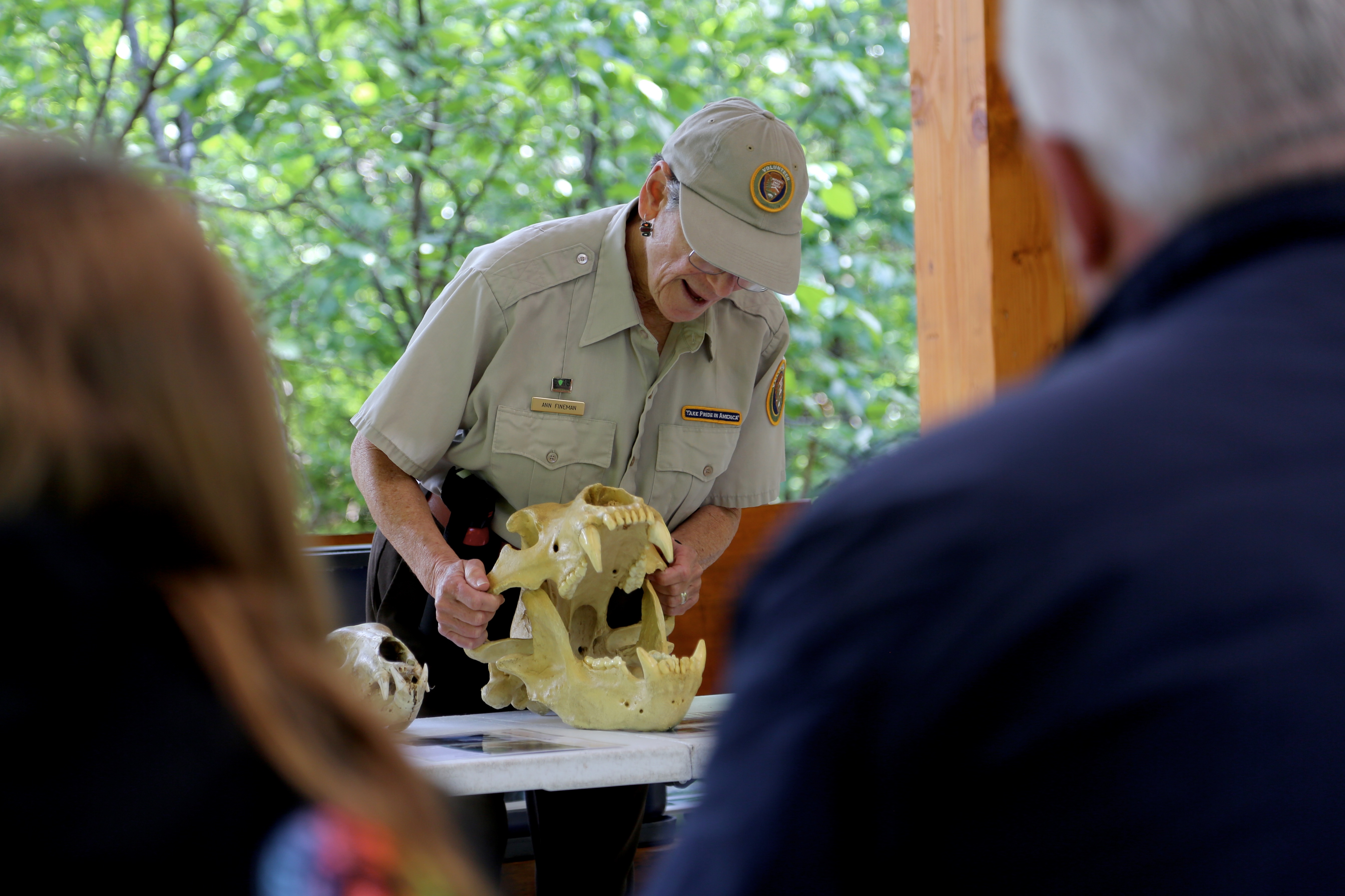 Ranager Ann Fineman gives an educational presentation on black and brown bears at Exit Glacier in Kenai Fjords National Park to a vivisitng family from Denmark on Thursday, June 11, 2015. Here, she shows the size and defining characteristics of a Kodiak Brown Bear skull.Ranager Ann Fineman gives an educational presentation on black and brown bears at Exit Glacier in Kenai Fjords National Park to a vivisitng family from Denmark on Thursday, June 11, 2015.Ranager Ann Fineman gives an educational presentation on black and brown bears at Exit Glacier in Kenai Fjords National Park to a vivisitng family from Denmark on Thursday, June 11, 2015.A scene on the path to Exit Glacier in Kenai Fjords National Park on Thursday, June 11, 2015.A scene on the path to Exit Glacier in Kenai Fjords National Park on Thursday, June 11, 2015.Visitors hike to Exit Glacier in Kenai Fjords National Park on Thursday, June 11, 2015.A scene on the path to Exit Glacier in Kenai Fjords National Park on Thursday, June 11, 2015.Exit Glacier in Kenai Fjords National Park on Thursday, June 11, 2015.A scene on the path to Exit Glacier in Kenai Fjords National Park on Thursday, June 11, 2015.A scene on the path to Exit Glacier in Kenai Fjords National Park on Thursday, June 11, 2015.Visitors take in the sights and sounds at Exit Glacier in Kenai Fjords National Park on Thursday, June 11, 2015.A scene on the path to Exit Glacier in Kenai Fjords National Park on Thursday, June 11, 2015.