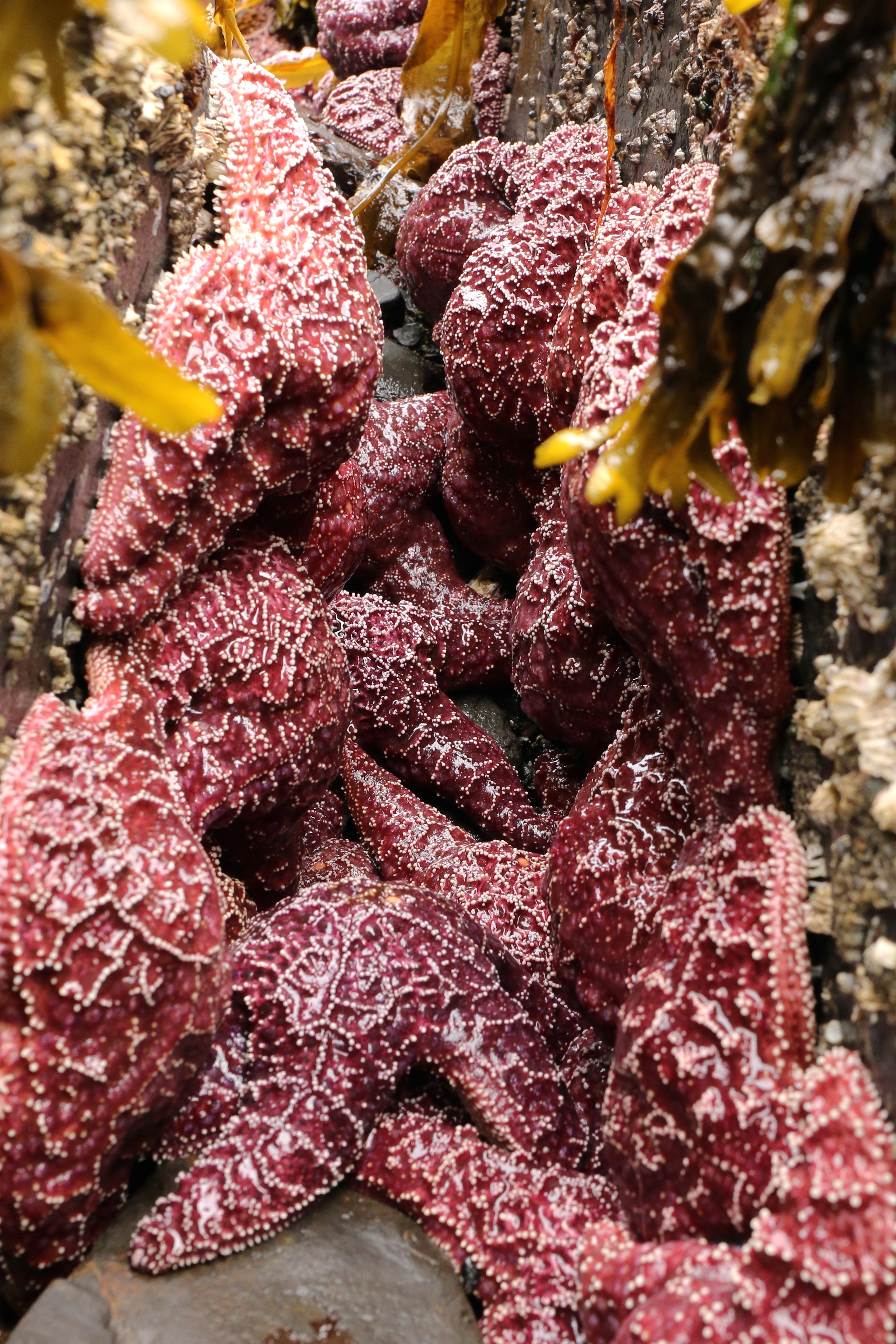 We pulled up to this small area, covered in rocks. Erin dropped Jim and I off with all our gear and we headed over to a rocky intertidal area. The footprints seemed oddly out of place here. The thought of the last time a human had stepped here crossed my mind. It very well could have been a few hours ago, or a few months ago. There was no way to tell really, because if there were signs they are washed away by the tide multiple times a day. This was the first time I had seen sea stars, which seems odd to say now. They’re teeming here, it seems.
