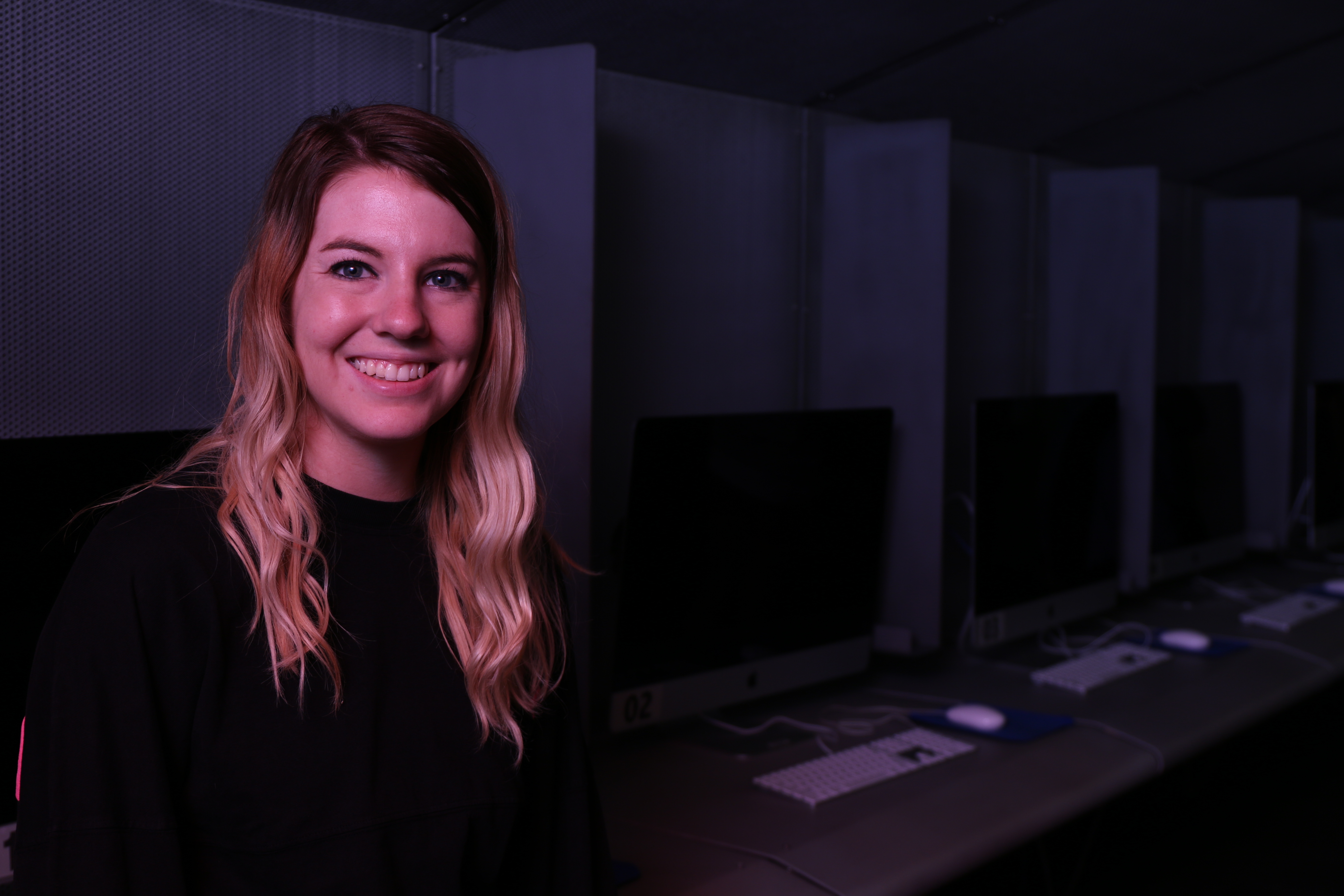 Bounce Flash, the process of using a speed light that is pointed behind you (angled at a wall) to illuminate a subject is tricky. If you bounce off any surface that isn’t white, you’ll get a color thrown. For example, here Sarah has bounce flash lighting across her face, but the red hue is coming from the red wall that the light was bounced off of.