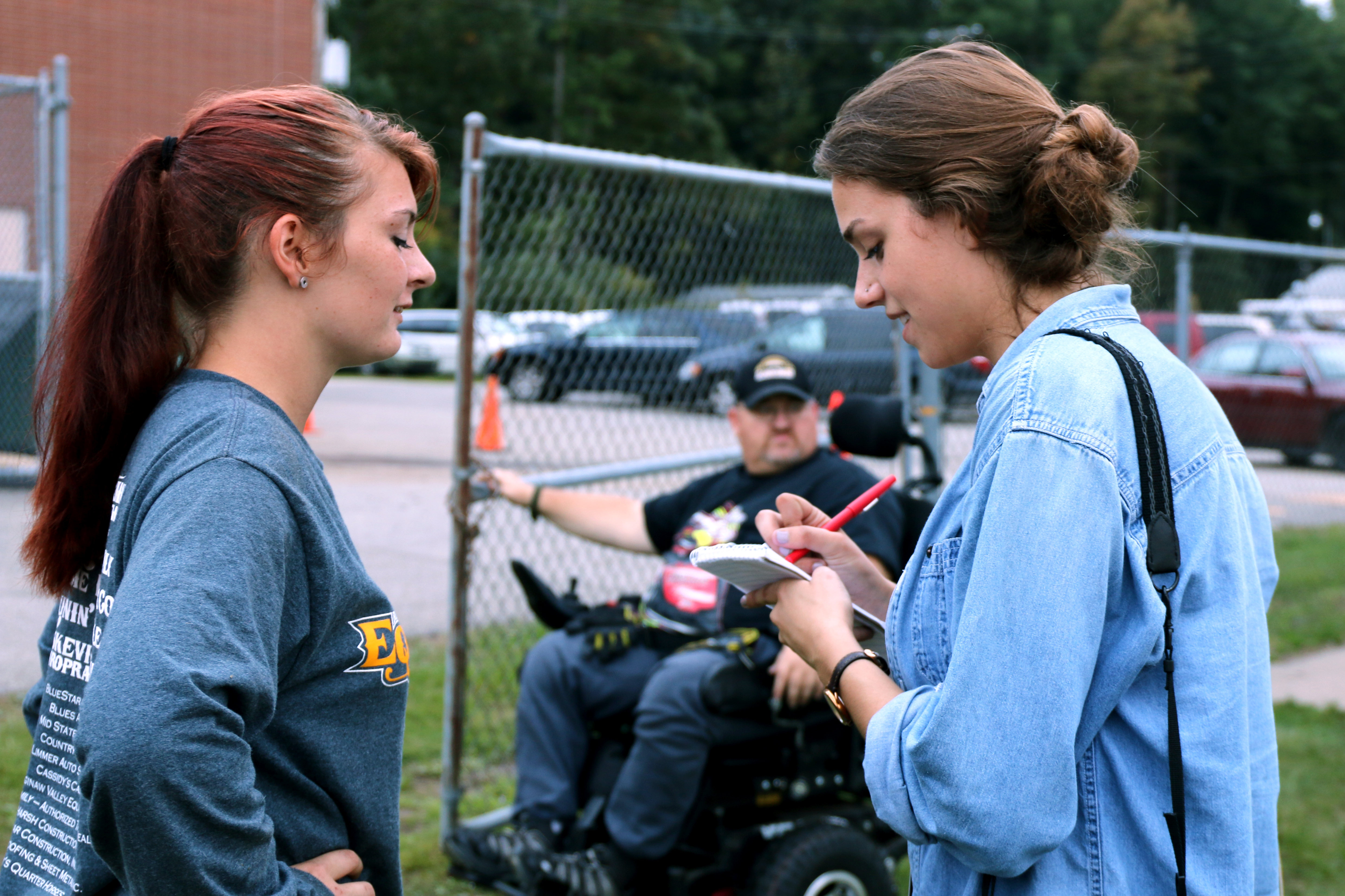 Erin is one month into her new job at Midland Daily News, and it was immensely beneficial for me to shadow someone new to a job like this. Although she’s new to both the job and the city, it was clear that Erin has already made herself an important part of the community. When shooting for a small community newspaper, it’s important to not only document what’s going on, but become a part of the community. Being friends with coaches, parents, and other people of the community gives you access that wouldn’t be possible with out a genuine relationship, and it shows through Erin’s photographs. This was her second time shooting Bullock Creek High School and she was already laughing and chatting with moms on the sidelines, asking the coach for permission to get into the locker room, and really did look like she was already accepted by the team.
